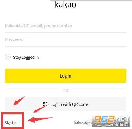 如果没有 kakao 账号,则点击左下角的 "Sign Up" 注册新的账号。