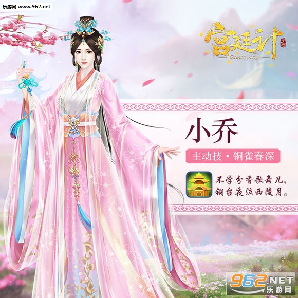 最初与周公瑾乃是天作之合,古今诗词人总爱怀古,总写不尽他二人的情事。如若不是生逢乱世,小乔也只是一个养在深闺之处,窗檐下品茶读书,与姊姊一同只做个温婉之人。憾逢乱世烽火连天,虽有英雄夫婿,难安此心。如今不上铜雀台,只身赴会《宫廷计》一身粉黛,面若芙蓉,温柔一记,最为致命。