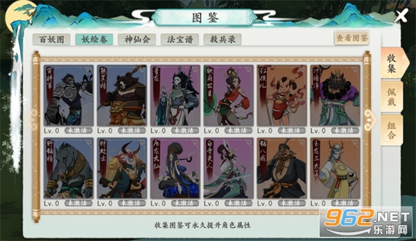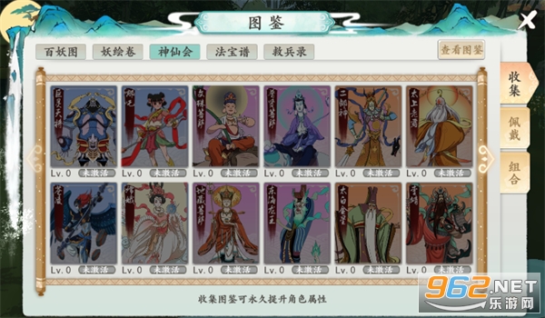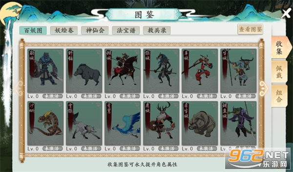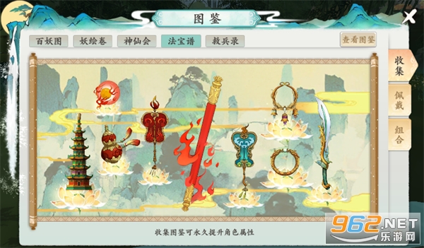 1、图鉴系统共分为【百妖图】、【妖绘卷】、【神仙会】、【法宝图】、【救兵录】五种