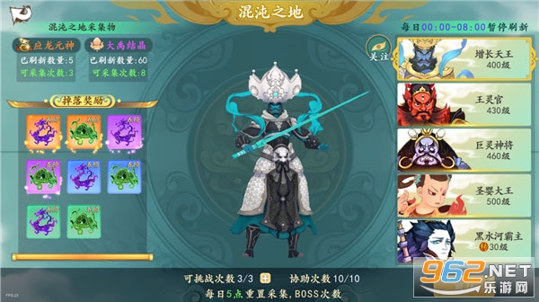 (3)场景内将会定期刷新天材地宝“应龙元神”和“大禹结晶”,并由“混沌守卫”进行守护。