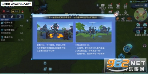 在游戏中,需要守住6波攻击,并保护5个守护塔,副本时限为10分钟,按村民存活数量评级,在副本中有部分可搬运物(陷阱)有3种。