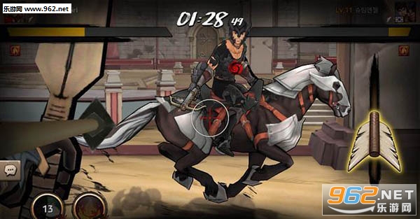 游戏的主要玩法就是骑在移动的马上,射中对方,将对方血量打完就算胜利。说起来简单,但实际玩时,这种瞄准时令人紧张窒息的感觉非常突出!