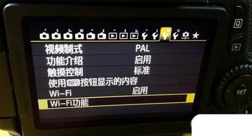 1、点击相机左上角的Menu按钮,如下图所示找出相机的Wifi功能。“Wi-Fi”一行默认状态为关闭,点击改为启用,再点击SET(OK)。这样我们就打开了相机的Wifi功能。