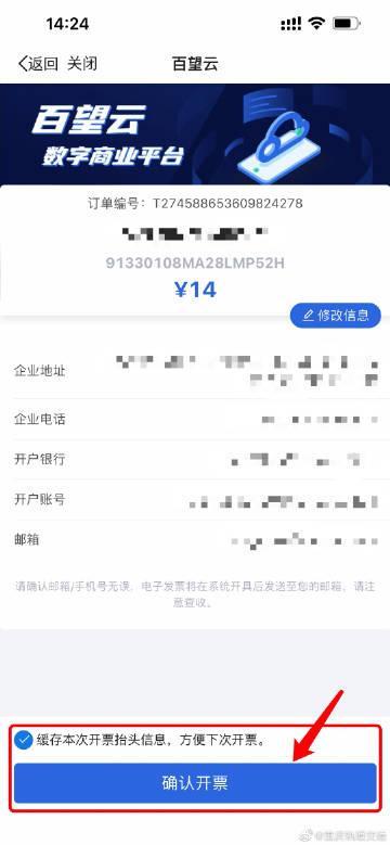 5、输入需要开发票的相关信息,然后点确认开票。