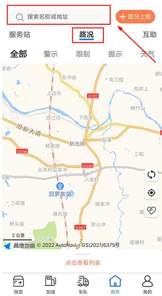 ④查找路况:当前定位可直接查看地图和列表,非当前定位可通过搜索地址查询;