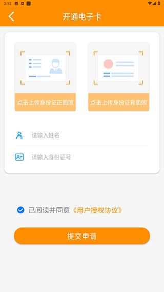 4、上传身份证两面照片提交申请即可开通电子卡了