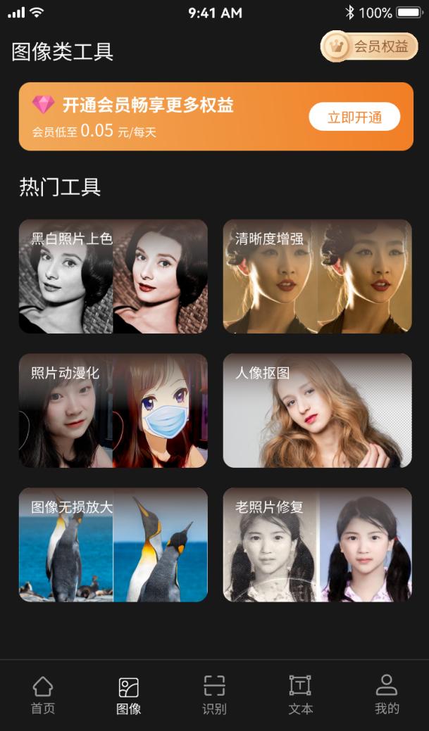 图像功能模块主要提供所有的图片服务,通过AI技术对图片添加特效和增强,满足用户的各种需求;