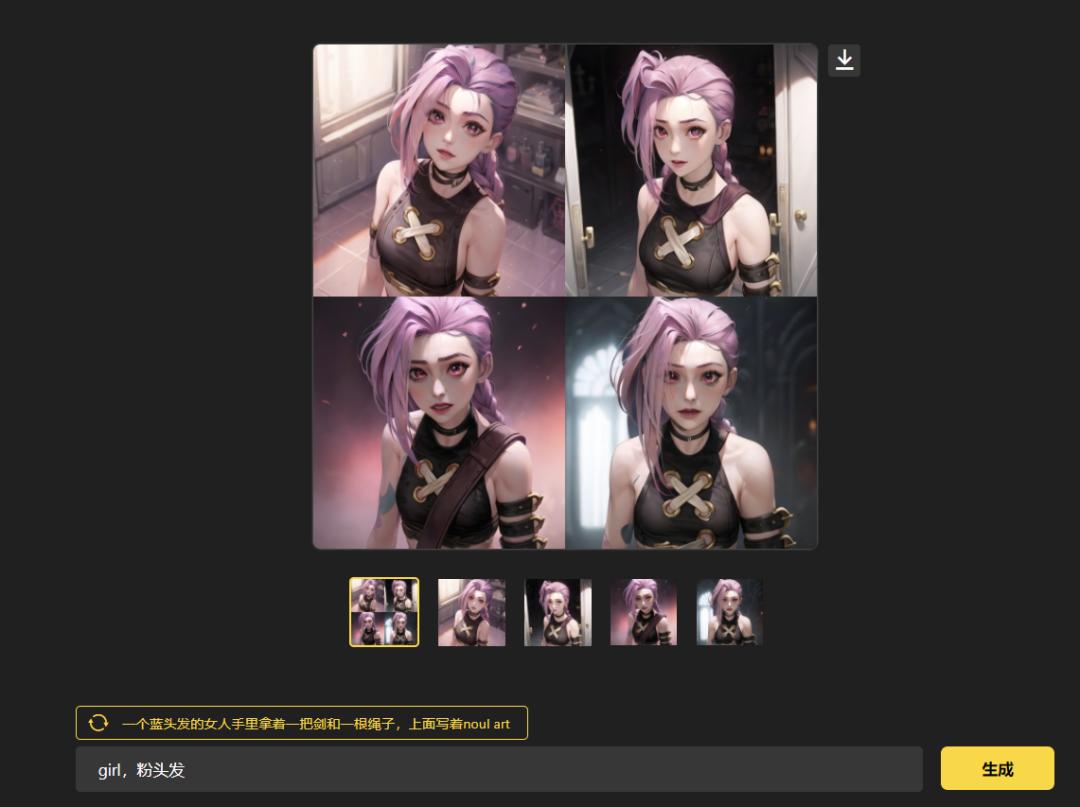训练后,并像前面那样调用,只要提示词输入「粉头发」,分分钟就能给金克斯染发。
