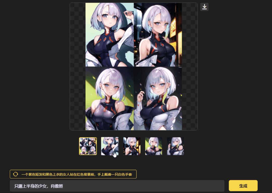 随便输入一句提示词,无中生有的小姐姐就来了。