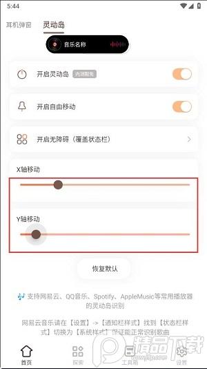 7、在这里能够自由设置灵动岛位置,通过调节X轴Y轴即可完成调节。