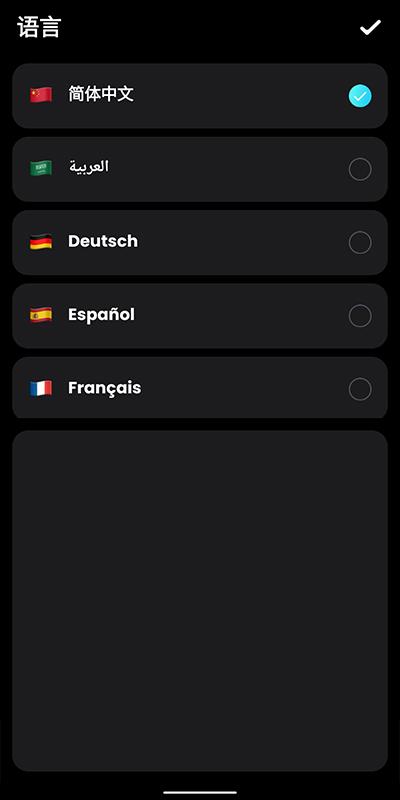 1、在本站下载并安装蓝线特效相机,打开应用后选择应用界面语言后点击右上角“√”号即可进入应用