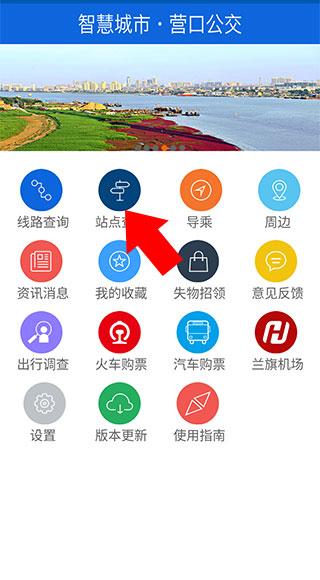 1、下载并打卡营口行app,来到首页后点击站点查询按钮
