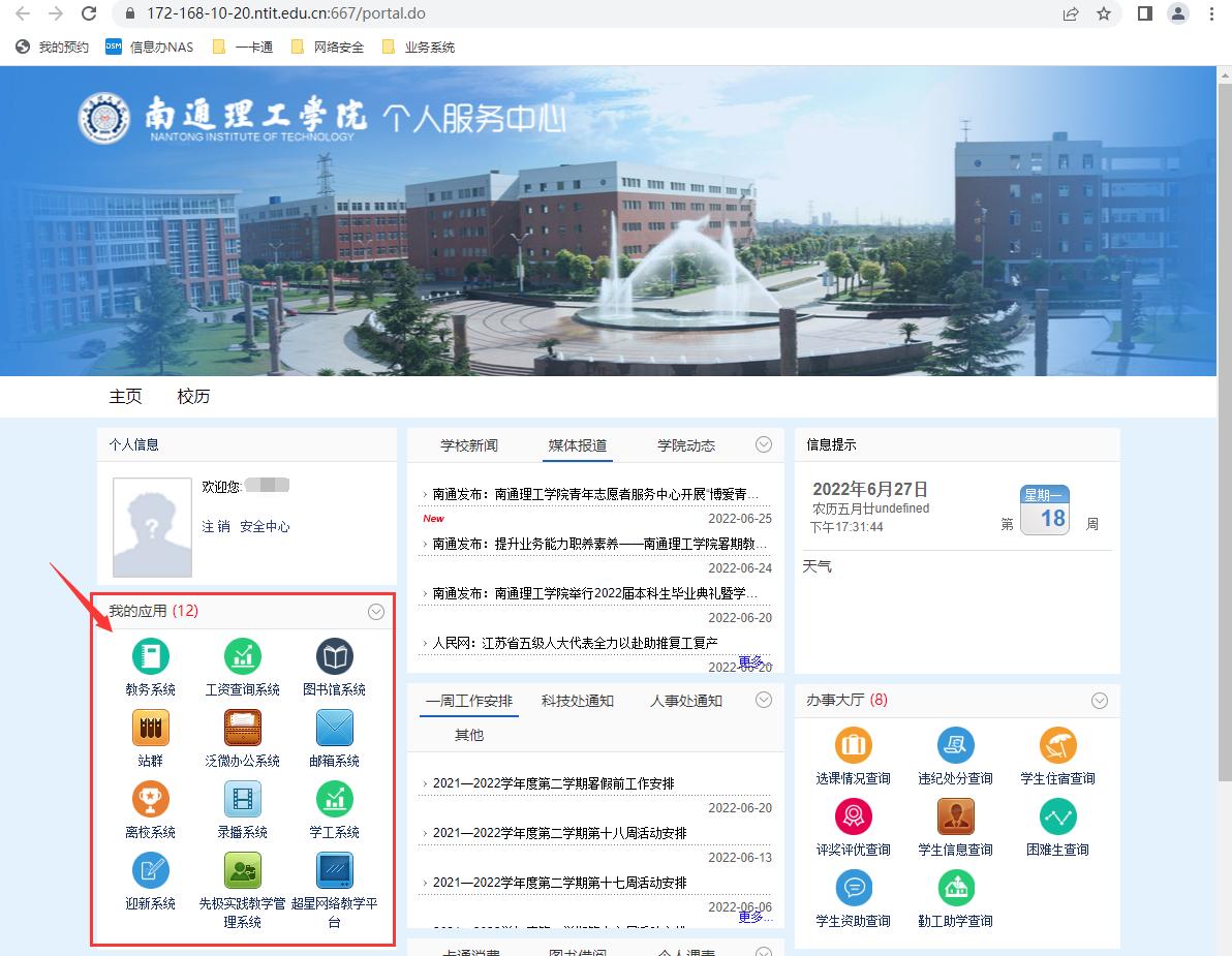 6、正常访问学校信息门户等相关资源。其中,信息门户可单点登录,无需在输入密码二次验证。