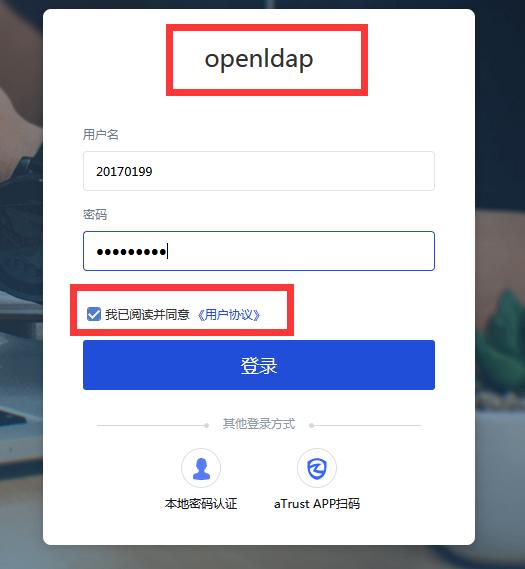 3、输入信息门户账号和密码,勾选“我已阅读并同意《用户协议》”
