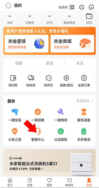 1、下载并打开小米商城app,点击右下角“我的”按钮