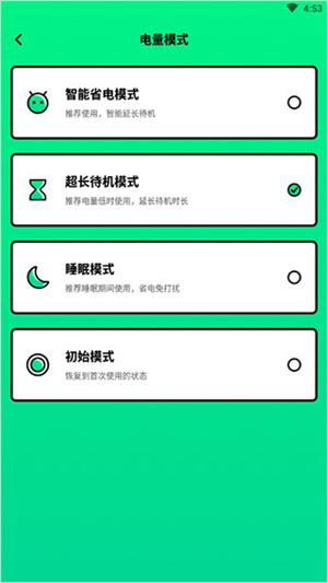 3、点击【电量模式】,可设置智能省电模式、超强待机模式、睡眠模式和初始模式;