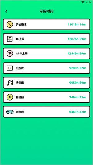 5、点击【可用时间】,可以查看每个软件在这个电量可以使用的时间长度。