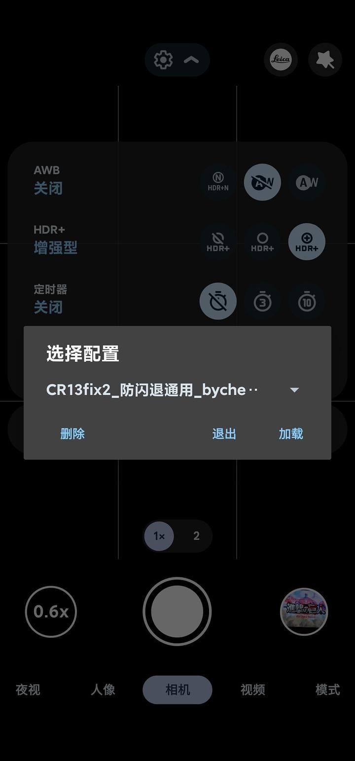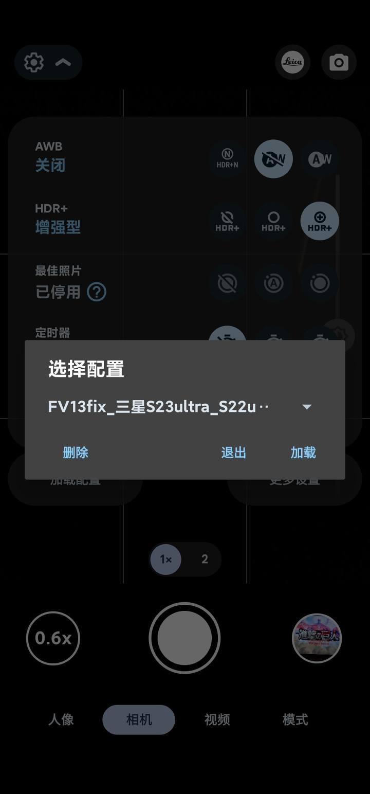 长按桌面图标进入视频录制后下拉加载防闪退配置(通用机型)。包括小米13,x90pro+,s23系列默认状态会黑屏,导入各自的专用配置就不会有黑屏闪退等问题。(也就是说打开app闪退或者黑屏可以通过加载配置文件解决问题),通用配置出现的黑屏闪退对焦等等问题都去看置顶帖解惑部分。