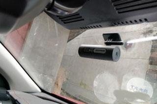 4、主机贴到前挡风玻璃上,按照说明书以及静电贴上面的标记,主机直接贴在静电贴上。