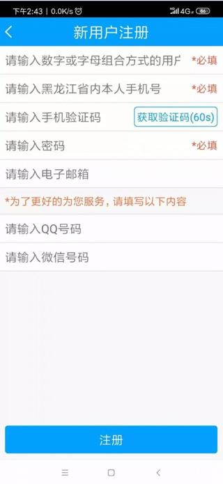 6、进入新注册人员信息界面,输入信息后点击“注册”完成新用户注册