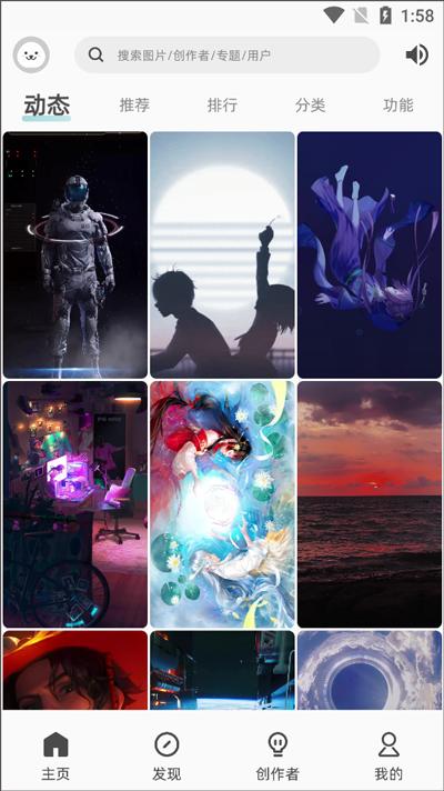 1.对壁纸进行了合理的分类,有人物类动物类,明星类,动漫类等等,可选择的范围特别广阔。