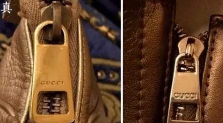 正品Gucci拉链是定制拉链,拉链头的背面有Gucci刻字,字母清晰。 皮包的内衬材料厚实光滑,花纹倾斜,指甲在声音中滑动,摩擦明显; 内衬布上的针数完全对称,标牌后面的图案在中间也对称。
