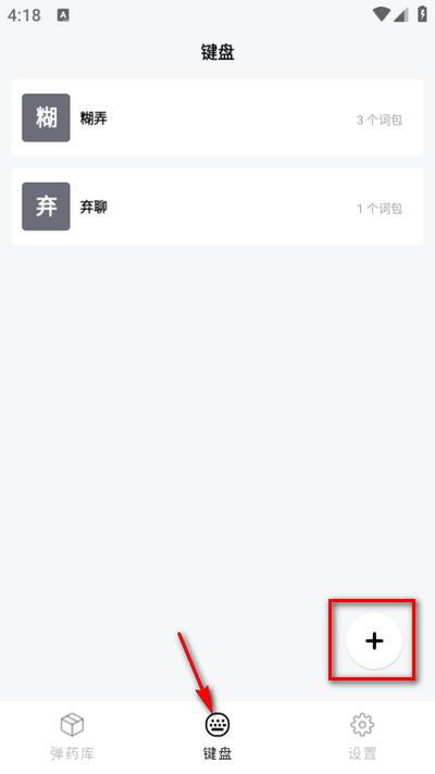 1、打开软件,点击下方键盘,再点击右下角加号。