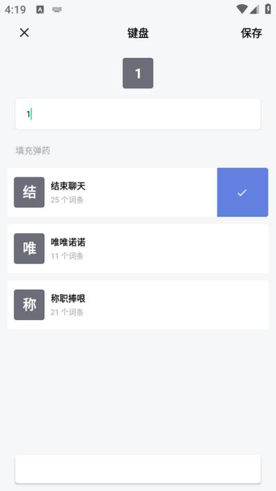 2.打开键盘,按键进行下拉可以从词包中抽取聊天回复语句。