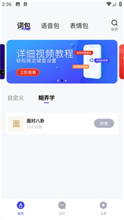 5.在词包中可以选择感兴趣的词包进行回复,安装的不同词包里面的语句也是不一样的。
