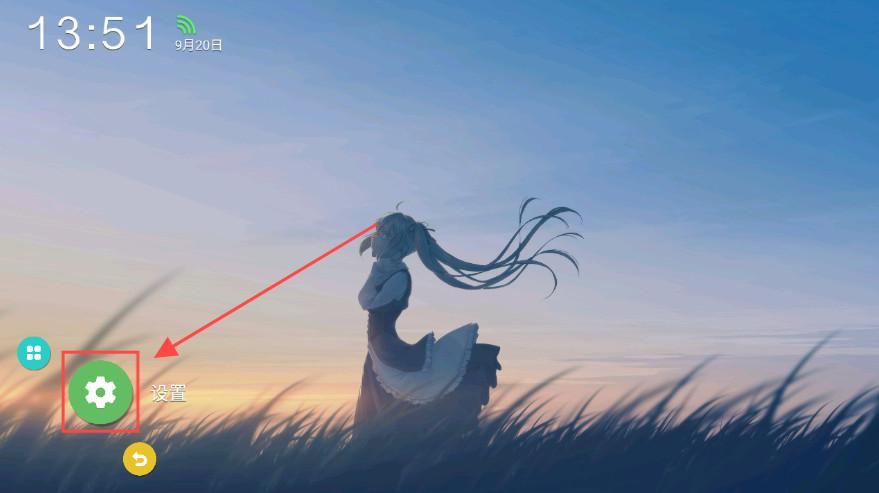 1、电视安装好桌面软件之后,按遥控器左右键,在左下角找到设置按钮