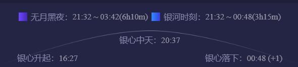 月光也是银河的天敌,等同于光污染。你可以通过天文通很方便的查询到月亮的升落情况。但是如果你懒的话。天文通提供了 「无月黑夜」 时间。