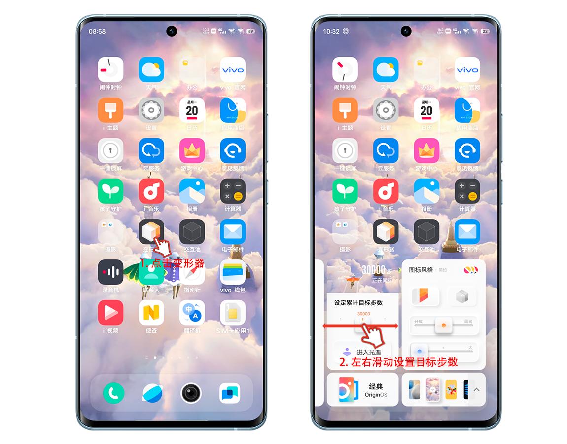 点击桌面变形器--滑动步数横条上的按钮,设置目标步数。