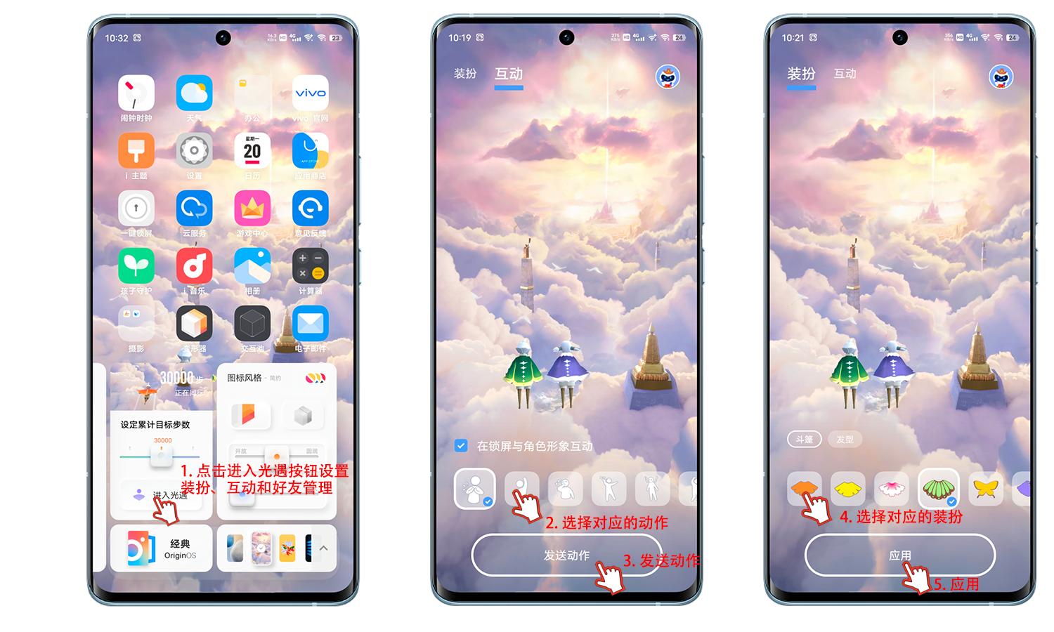 这是vivo上可玩性很高的一款壁纸,壁纸将会根据行走步数将壁纸画面慢慢由云端一直到天空王国移动。