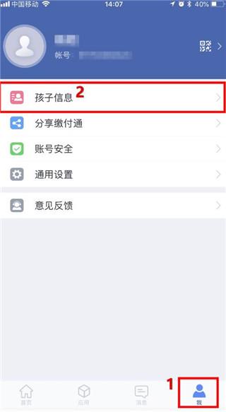 2、接着绑定学生个人信息,点击右下方的【我】,再点击【孩子信息】,进入新页面后点击右上方的【新增】;