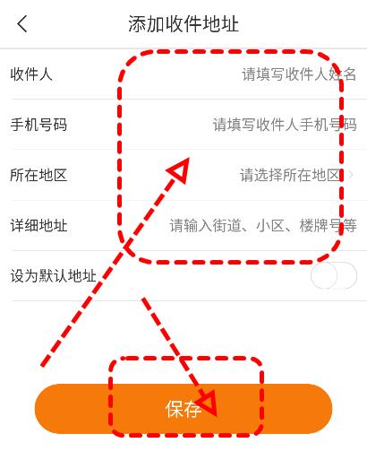 然后就根据提示框里依次输入收件人、手机号、地址等信息并保存就可以了。