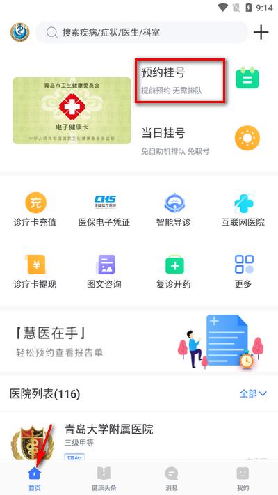 预约挂号:用户无需早起排队,即可提前在线预约门诊。