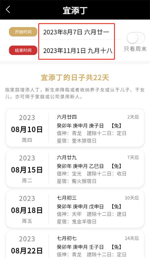 4、然后就可以查看有哪些好的日子,在这里面选择自己需要的。