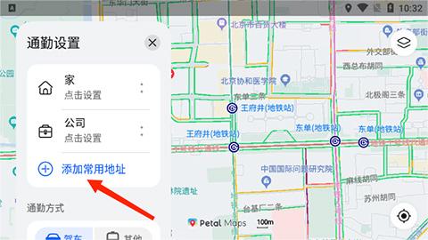 2、进入通勤设置界面,选择下方“添加常用地址”选项,