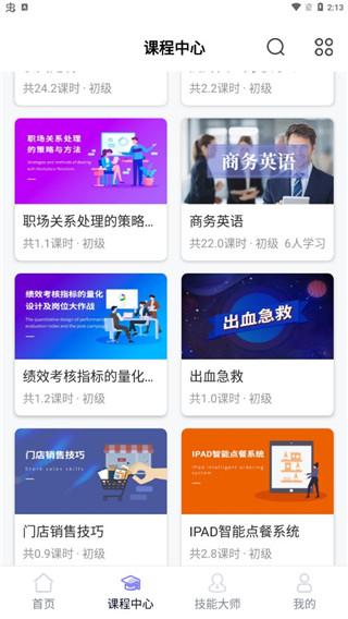 4、还看可以进入课程中心学习不同的职业技能,比如商务英语。职场关系处理的策略、出血急救等;