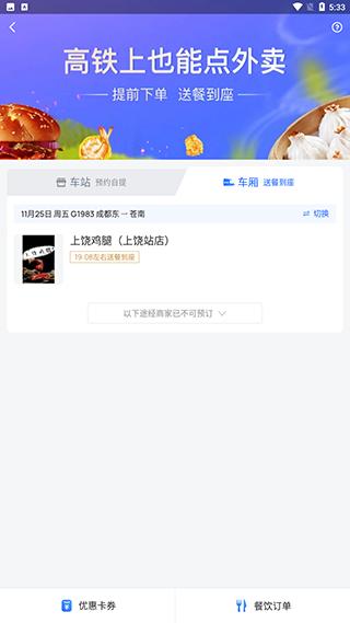 2、输入自己的出发车站和到达车站,再次点击右下角订餐。