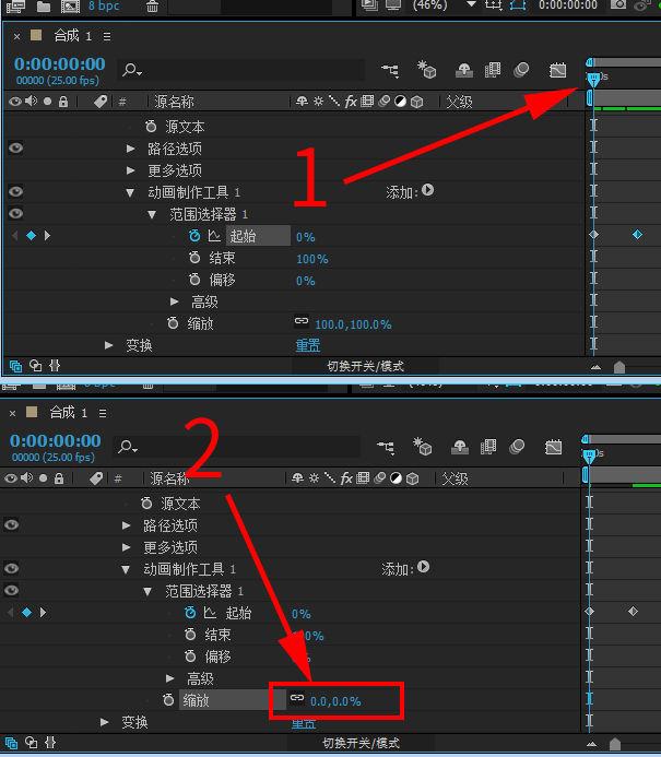 再把时间在拖到到最开始的位置,修改缩放为0即可;