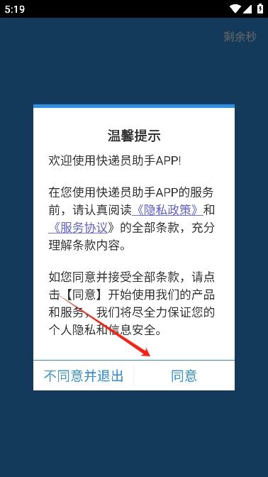 2、进入后阅读并同意快递员助手app的用户协议