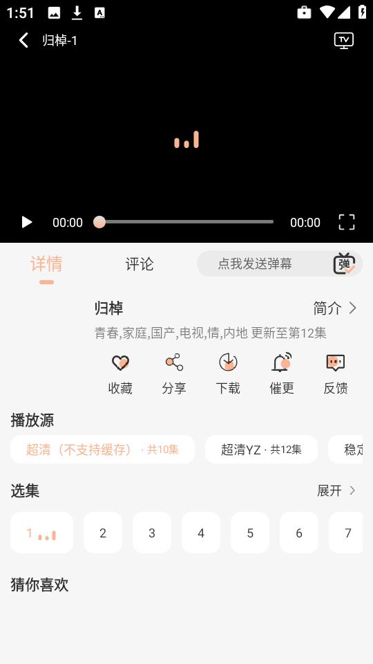2、接着任意选择一部你喜欢的影视播放,这里以“归棹”为例。