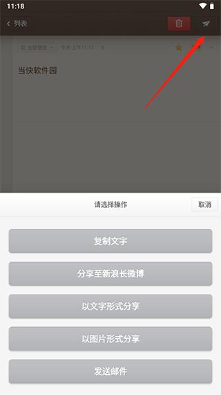3、点击进入便签,点击右上角按钮,可将便签分享至新浪微博