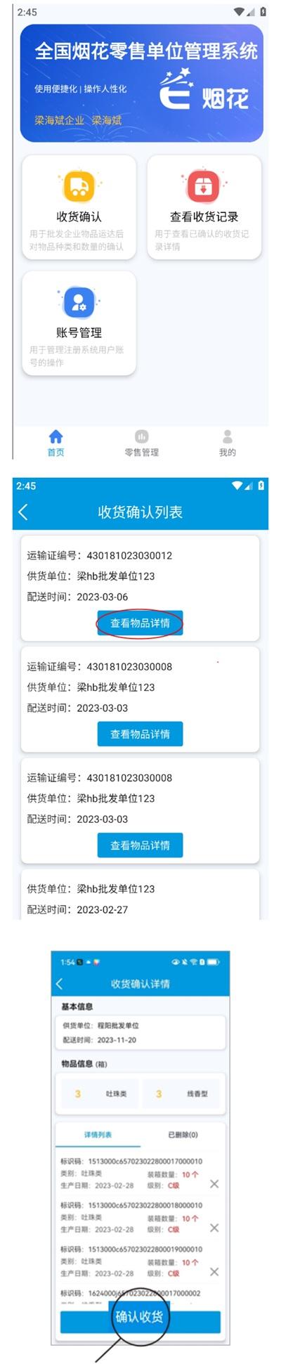 零售单位如何使用手机e烟花APP进行"收货确认"?