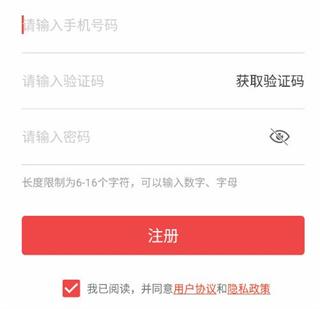 4、输入手机号码,密码,验证码,勾选我已阅读,点击注册