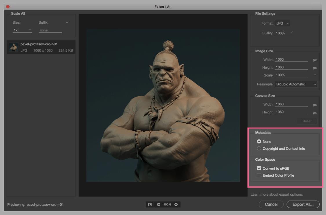 为了获得最佳质量,图像质量几乎不会有明显损失,我们建议将图像导出为 JPG,质量为 100%,宽度为 3840px。在此分辨率下,如果查看显示器接受,通常您上传的内容就是您在网站上看到的内容。