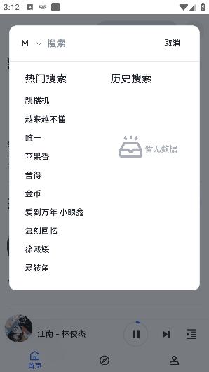 2、点击搜索框还能够快速对想听的音乐进行搜索