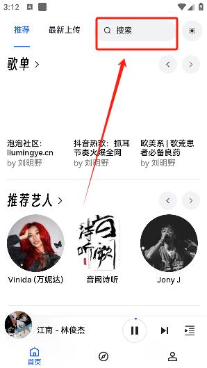 1、打开软件在首页可以看到许多的歌单和音乐