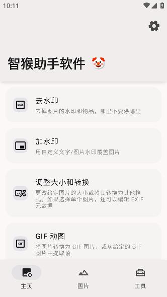 智猴助手软件是一款图像处理软件,它具有去水印、加水印、动图制作、图片格式转换、自由裁剪、尺寸控制、加解密等十几项功能,让用户能对照片图像进行优化处理,从而得到更完美的图像,里面还有很多功能等你来探索,快来下载体验吧。